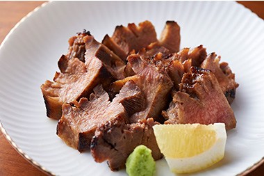酒蔵から取り寄せた酒の麹を使用して作った自家製の塩麴に漬けることにより、厚切りの牛タンも やわらかく、風味も味わいも豊かに仕上げております。 レモンとわさびでさっぱりとお召し上がりください。